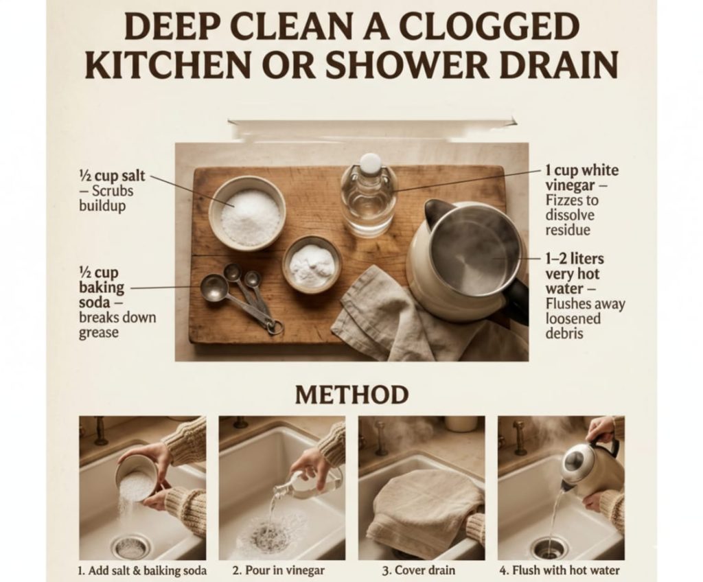 লবণ এবং বেকিং সোডা সরাসরি ড্রেনে ঢেলে দিন।